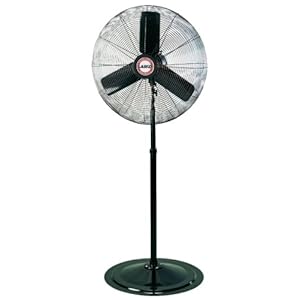 Ideal for large-scale air circulation, this heavy-duty, high-velocity, 30-inch, industrial-grade pedestal fan makes easy work of cooling warehouses, auditoriums, health clubs, and other large spaces. Enjoy three powerhouse speeds with pull-cord controls, plus optional oscillation to provide broader coverage. For maximum versatility, the fan's height can be fully adjusted from 64 to 92 inches, and its tilt-back head can be adjusted to direct air where needed. Other highlights include durable steel-body construction; metal fan blades for high-volume air movement; rust-resistant, powder-coated grills; fully-enclosed motor housing for added safety; a sturdy round base; and a 10-foot cord with a grounded plug. Fully assembled, the UL-listed fan measures 30-1/2 by 33 by 90 inches and carries a one-year limited warranty.